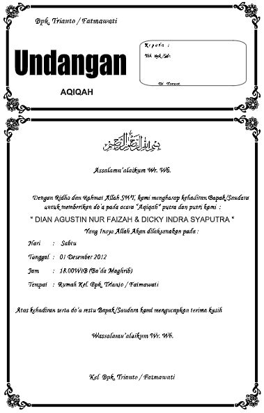 Contoh Surat Undangan Aqiqah format MS Word bisa diedit  Informasi