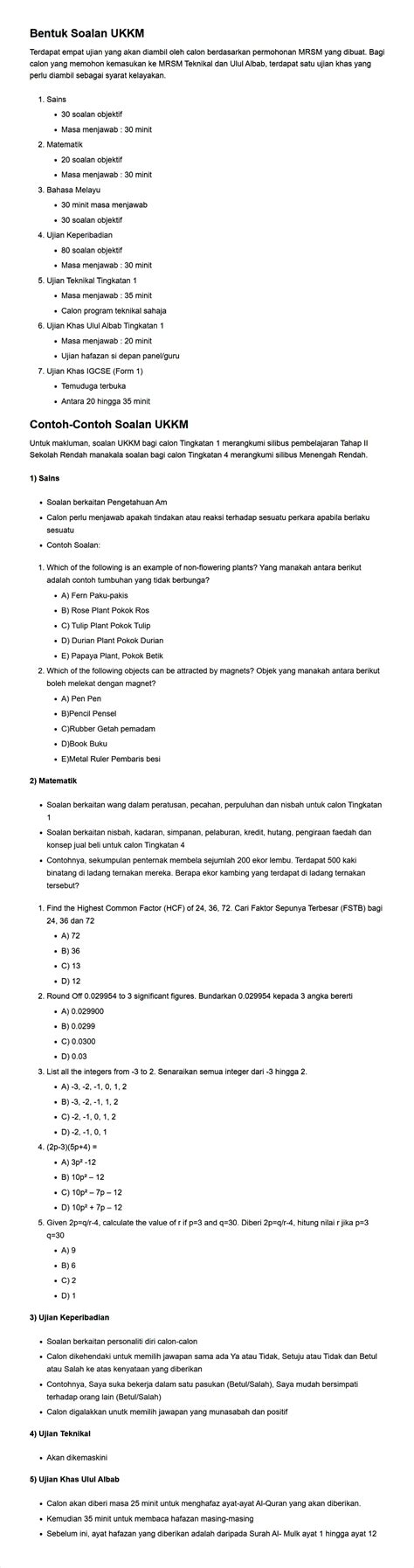 Malaypicks Contoh Soalan Ukkm